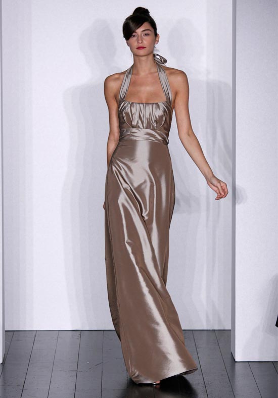 | Brown Halter Evening Cooktail Sort Silk Dress For Girls |